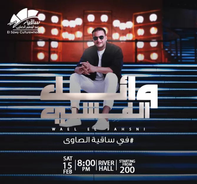El Sawy Culturewheel 26th of July street, Zamalek, Cairoيستعد وائل الفشني لإشعال المسرح في 15 فبراير على خشبة ساقية الصاوي، حيث يأخذ الجمهور في رحلة موسيقية تجمع بين الأصالة والإحساس القوي. استعدوا لأمسية لا تُنسى مليئة بالألحان العذبة والأداء المتفرد الذي يلامس القلوب. تفاصيل أكثر هنا.
