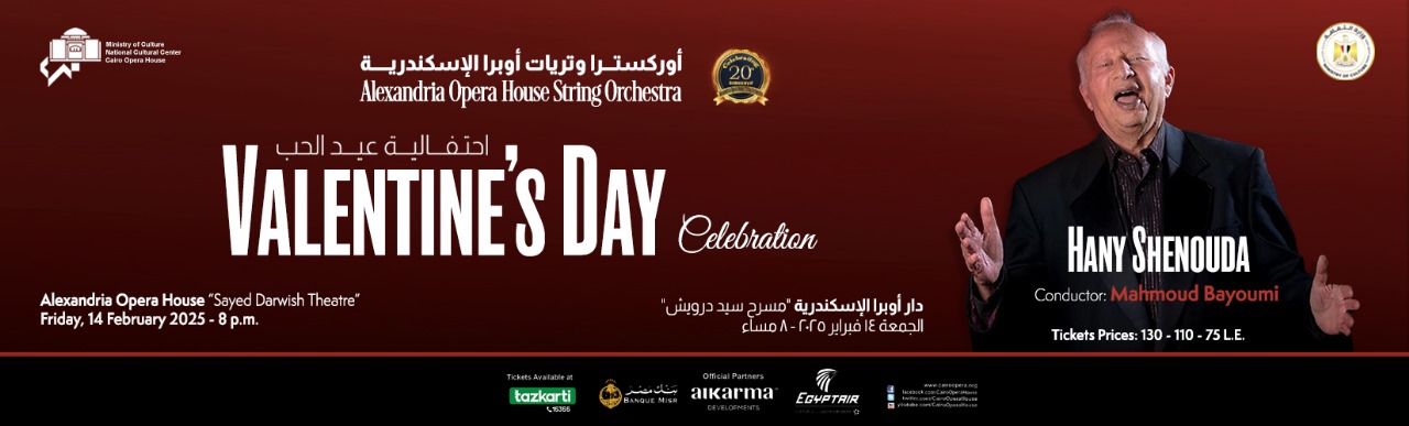 Sayed Darwish Theatreلأمسية أنيقة ورومانسية بحق، تقدم أوركسترا أوبرا الإسكندرية الوتريّة حفلاً موسيقياً خاصاً بمناسبة عيد الحب في مسرح سيد درويش بالإسكندرية يوم 14 فبراير. يشارك في هذا الحفل المميز الموسيقار الشهير هاني شنودة، ليأخذ الجمهور في رحلة موسيقية ساحرة تمزج بين الألحان العذبة والتوزيعات الأوركسترالية الخالدة، مما يجعلها احتفالاً موسيقياً لا يُنسى. تفاصيل أكثر هنا. […]
