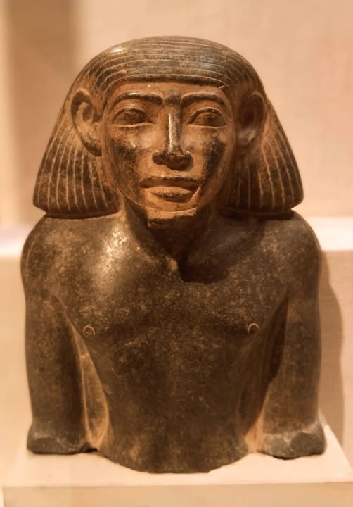 قدام رأس الملك سنوسرت الثالث، صعب تمر من غير ما تقف. القطعة منحوتة من الجرانيت الأسود، وملامحها بتنطق بالهيبة والصرامة.