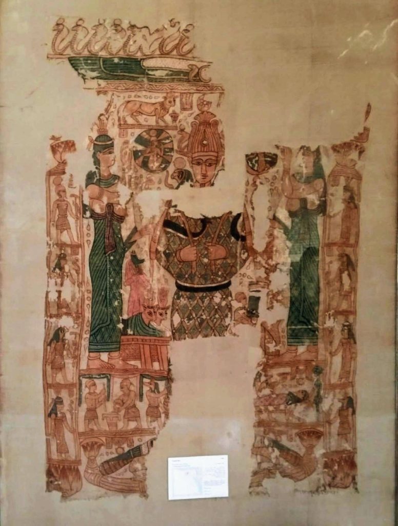 من القطع اللي ممكن تعدي عليها من غير ما تاخد بالك، لكنها من أعمق وأغنى المعروضات في المتحف، نسيج جنائزي نادر خاص بـ باك ان رنف، ومستخرج من مقبرته في سقارة.