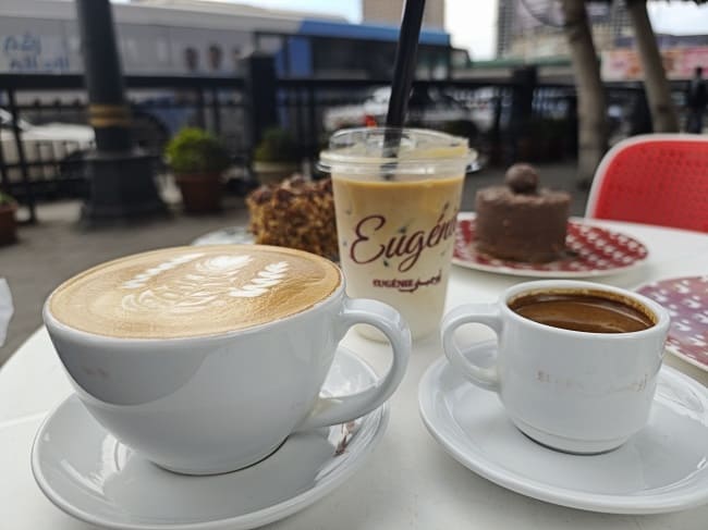 القهوة التركي سعرها (45 جنيه)، وجودتها عالية ومضبوطة.ومقترحنا أن المكان يستحق “توليفة بن” خاصة وحصرية بإسم “أوجيني”، علشان تكتمل لوحة التميز مع الديكور والخدمة.