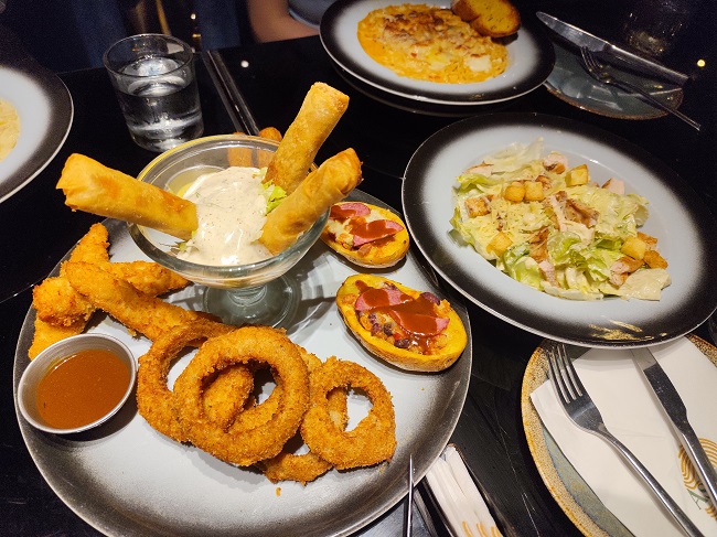 كمان طلبنا طبق مقبلات Aspero كومبو وكان سعره 700 جنيه، وكان فيه سبرينغ رول وطعمه حلو لو بتحبوا البصل، وأصابع موتزاريلا منزلتش أصلًا وبطاطس بيتزا وصوابع دجاج مقرمش وحلقات البصل وطعمهم حلو وانبسطنا منهم، وكمان كان مع الطبق 4 صوصات باربيكيو ومستردة عسل ودول كانوا ممتازين، أما صوص القشدة الحامضة والجبنة الزرقاء خلينا نقول مش الألطف لينا.