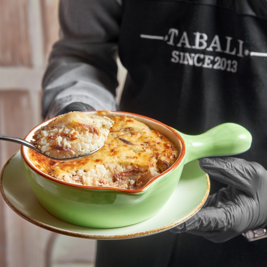 بيجمع بين الأكلات الشرقية واللمسة الحديثة في ديكور جميل. جرب سجق طبالي أو طاجن لسان عصفور باللحمة.