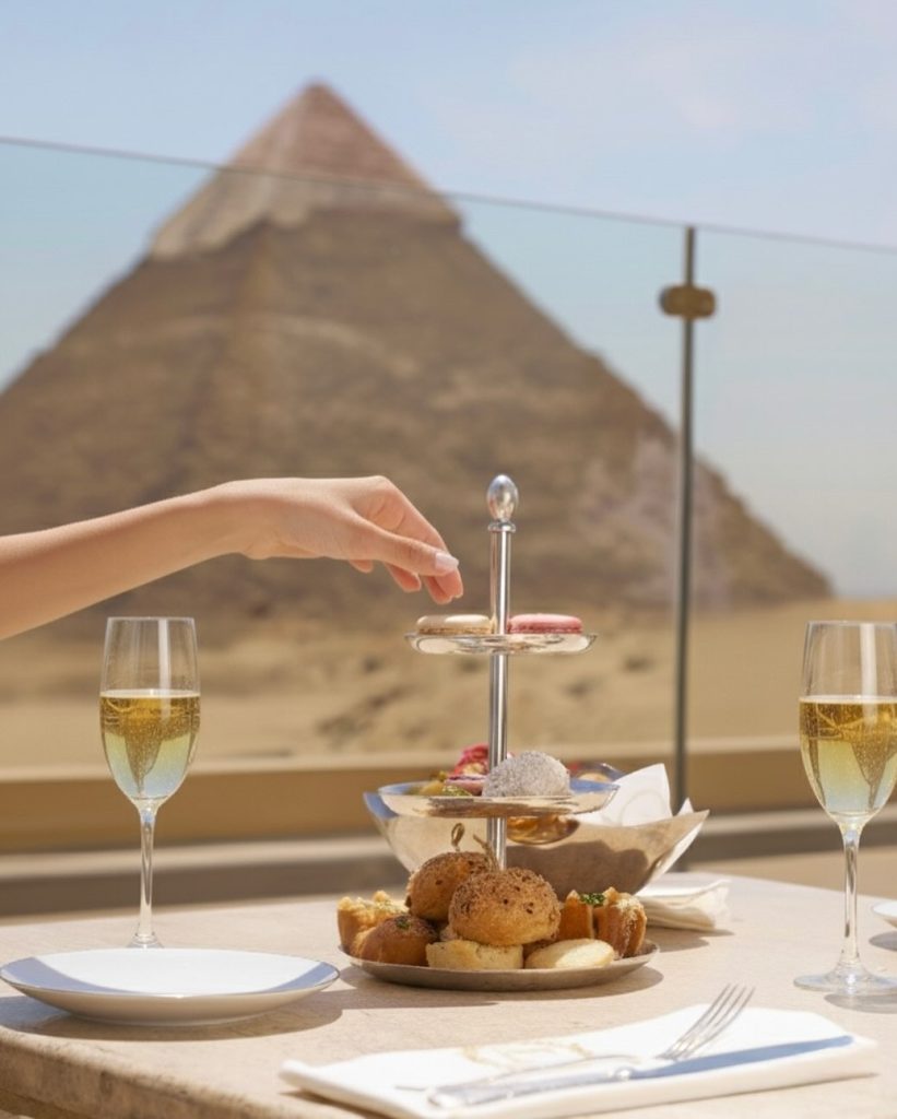 مطعم Khufu’s واحد من التجارب النادرة اللي تجمع بين الأكل والفيو والتاريخ في وقت واحد. المطعم موجود داخل منطقة الأهرامات نفسها، وبيقدم أكلات مصرية بروح معاصرة وخدمة فندقية عالية المستوى.