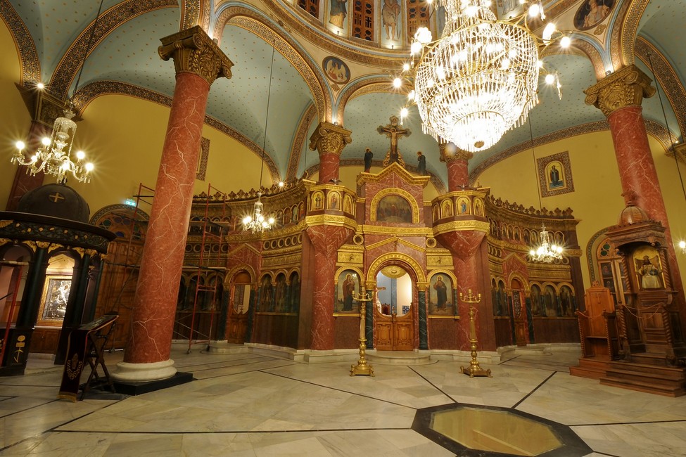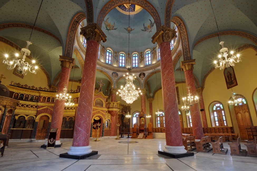 من جوه، الكنيسة بتخطف العين بتفاصيلها الدقيقة؛ جدران مليانة أيقونات وقديسين، قبة عالية مرسوم فيها مشاهد فنية مبهرة، وسلالم حجرية بتوصل لبرج الأجراس اللي بيتقرع صوته في الأعياد والمناسبات.