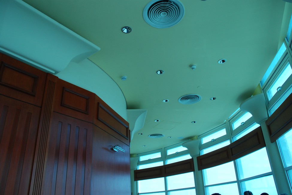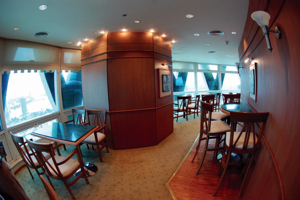 الأسطح الخارجية مزينة بـ8 ملايين قطعة فسيفساء صغيرة تتحمل عوامل الطقس، بينما القمة تضم مطعم دوار وكافتيريا ومناظير مكبرة تمنحك رؤية بانورامية للمدينة على 360 درجة.