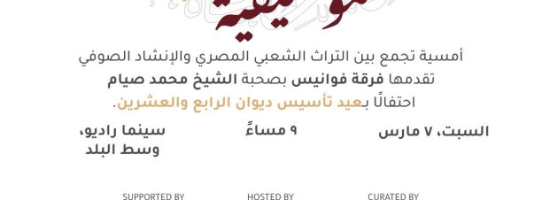 يلتقي الفلكلور مع الألحان الصوفية في ليلة احتفال مكتبة ديوان بذكراها السنوية في سينما راديو، وسط البلد، يوم السبت 7 مارس.