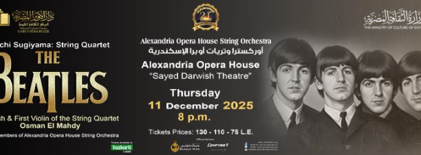 تقدم فرقة أوبرالي الإسكندرية للأوتار عرض “The Beatles” على مسرح سيد درويش بالإسكندرية يوم الخميس 11 ديسمبر، في ليلة موسيقية خاصة تحتفي بأسطورة الروك العالمية.