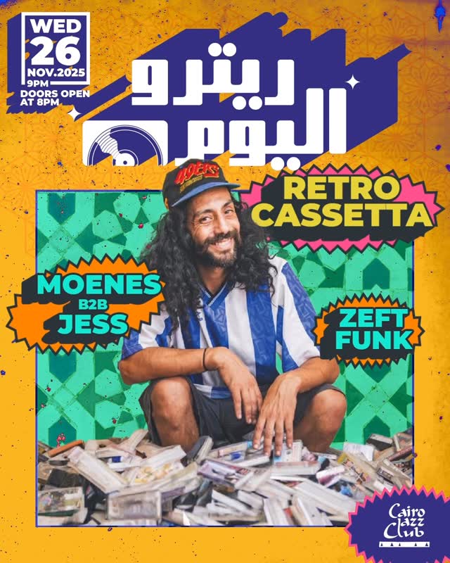 كايرو جاز كلوباستمتعوا بليلة Retro Cassetta في كايرو جاز كلوب يوم الأربعاء 26 نوفمبر، مع Moenes B2B Jess وZeft Funk في أجواء موسيقية تجمع بين الحنين والإيقاعات الحماسية. التفاصيل هنا.