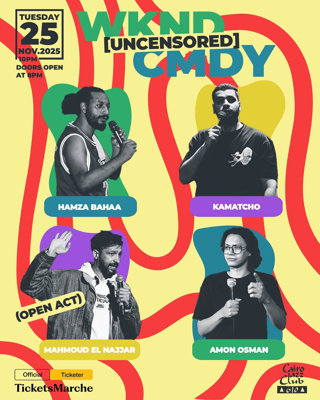 كايرو جاز كلوب 610 بالشيخ زايداقضوا مساءً مليئًا بالضحك مع Wknd Cmdy في كايرو جاز كلوب 610 يوم الثلاثاء 25 نوفمبر. التفاصيل هنا.