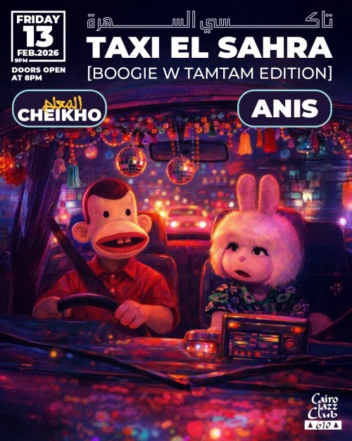 كايرو جاز كلوب 610 بالشيخ زايدلا تفوّتوا تاكسي الصحرا, نسخة بوغي وتمتم مع المعلم شيخو وأنيس في كايرو جاز كلوب 610 يوم الجمعة 13 فبراير. التفاصيل هنا.