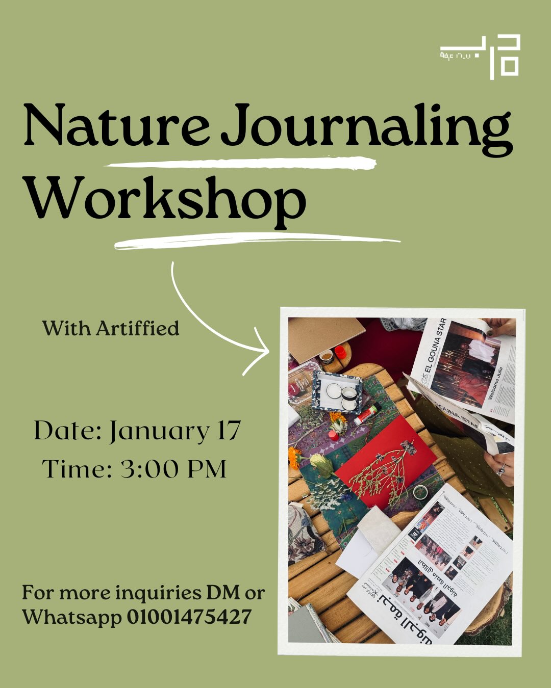 استمتعوا بتجربة إبداعية هادئة في ورشة تدوين الطبيعة بدرب 15 في المعادي، يوم السبت 17 يناير، حيث تلتقون بالطبيعة من خلال الكتابة والرسم والتأمل، في مساحة ملهمة تساعدكم على التعبير، الملاحظة، والتواصل العميق مع ما يحيط بكم. التفاصيل هنا.