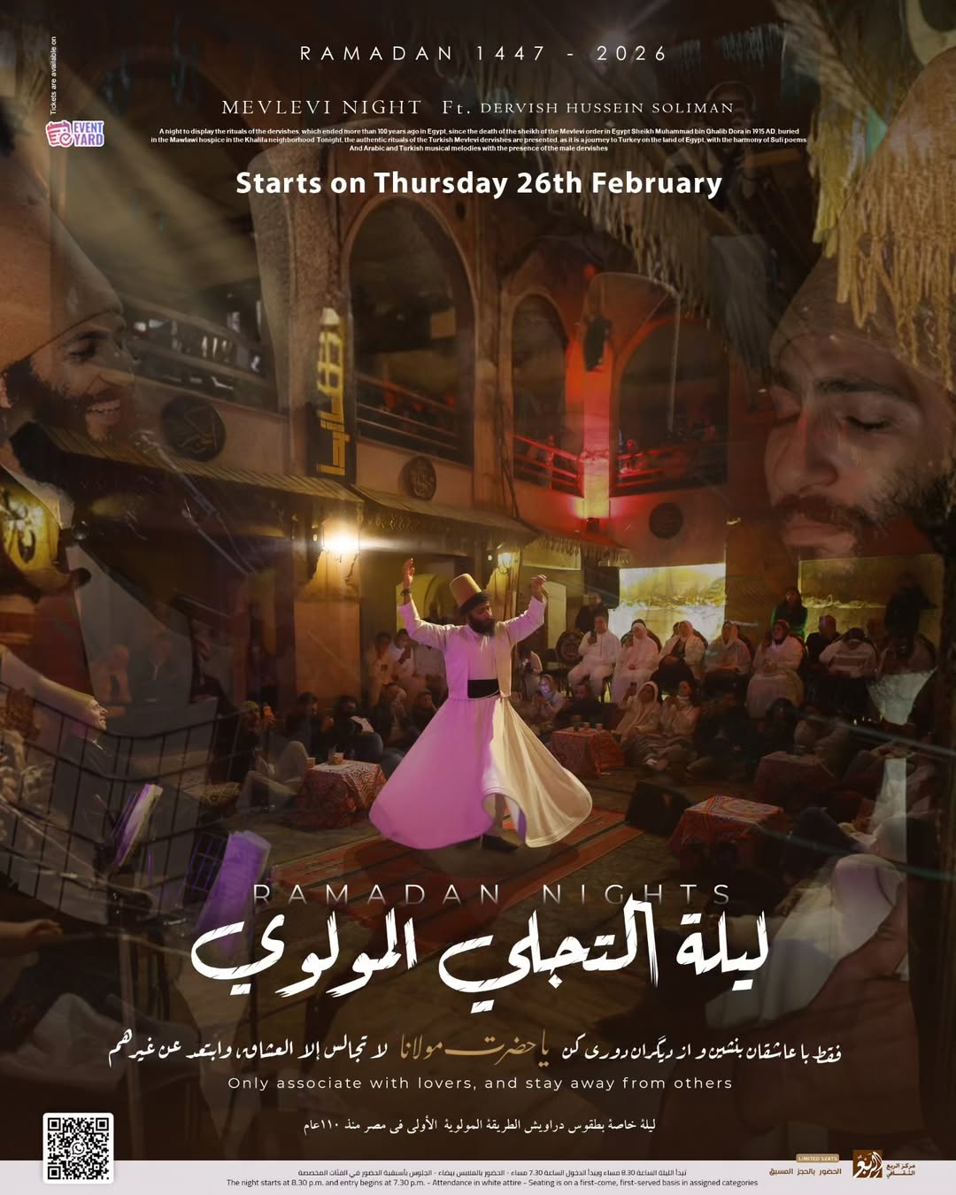 مركز الربع الثقافي بشارع المعزاستمتعوا بليالي التجلي المولوي هذا رمضان مع الدرويش حسين سليمان في مركز الربع الثقافي من 26 إلى 28 فبراير. التفاصيل هنا.