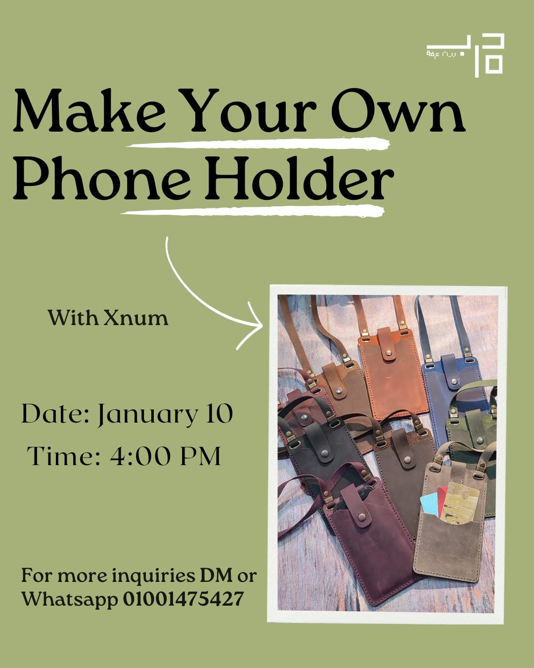 درب 15 الشيخ زايد | رويال بارك موللا تفوّتوا ورشة الحِرف الجلدية: اصنع حامل هاتفك بنفسك في درب 15، المعادي، يوم السبت 10 يناير. التفاصيل هنا.