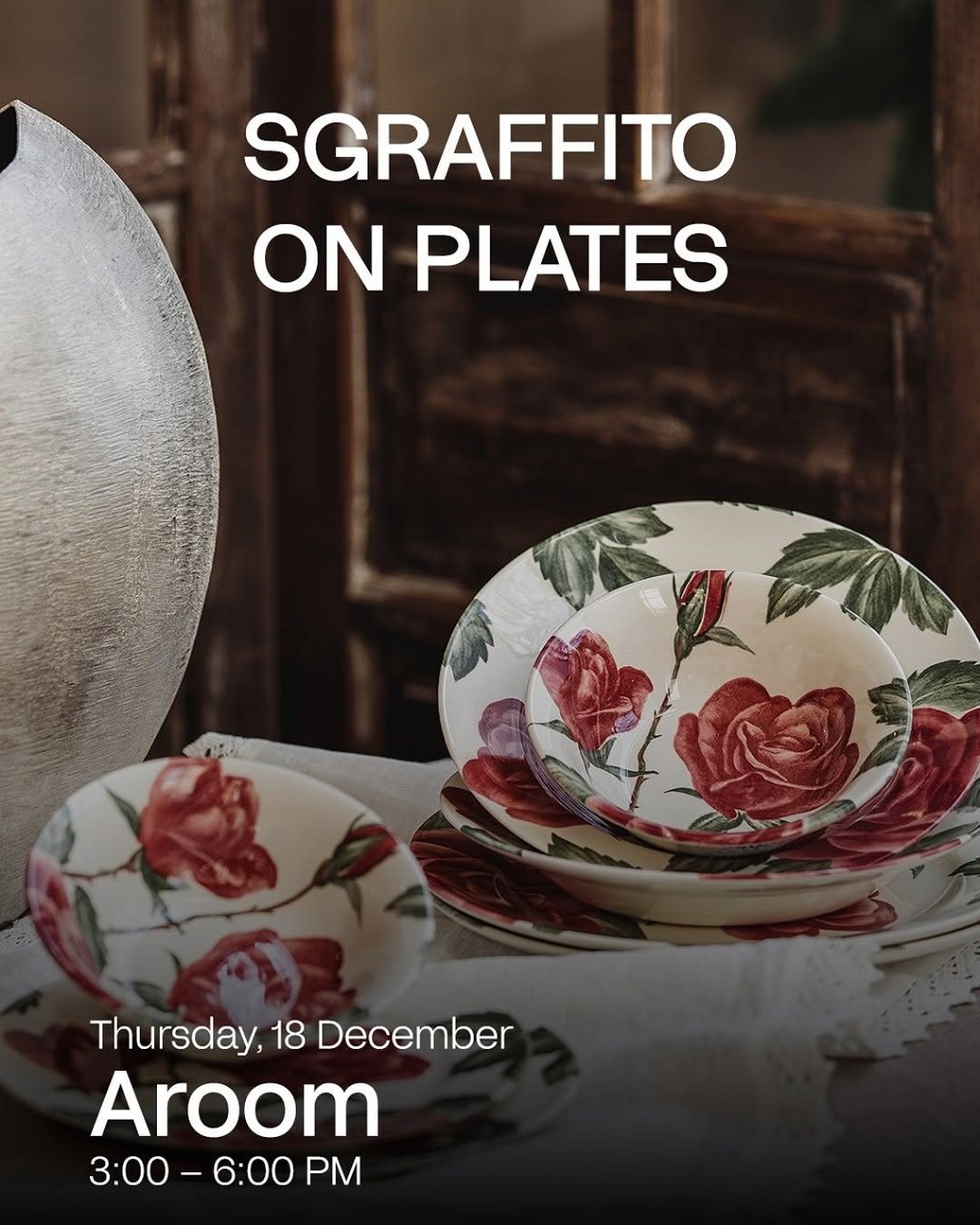 Aroomاكتشفوا جمال فن الخدش على الخزف في ورشة Sgraffito على الأطباق في Aroom يوم الخميس 18 ديسمبر، حيث تتاح لكم فرصة خوض تجربة فنية عملية والتعرف على تقنيات هذا الفن اليدوي المميز. التفاصيل هنا.