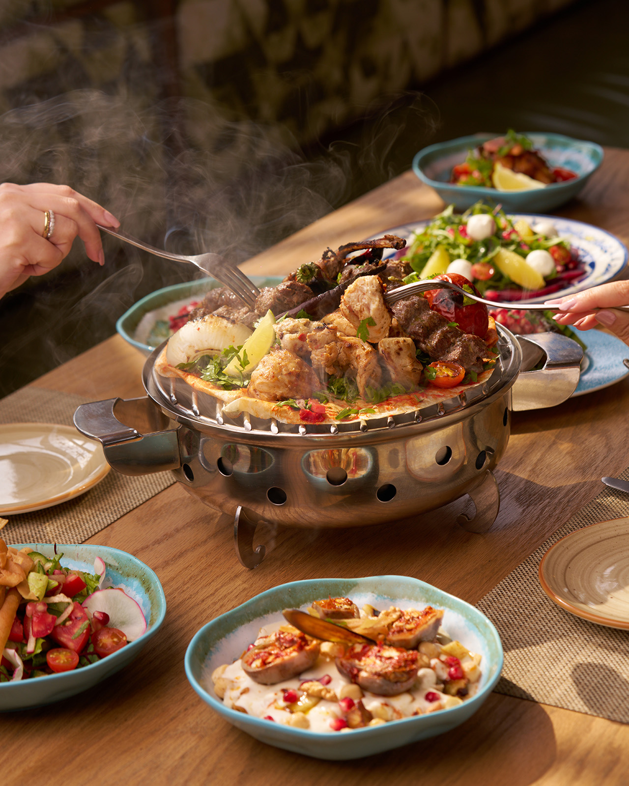 For a more curated experience, Aura offers Lebanese à la carte dining in a sophisticated yet relaxed environment. The menu showcases the rich character of Levantine cuisine, presented with contemporary finesse.