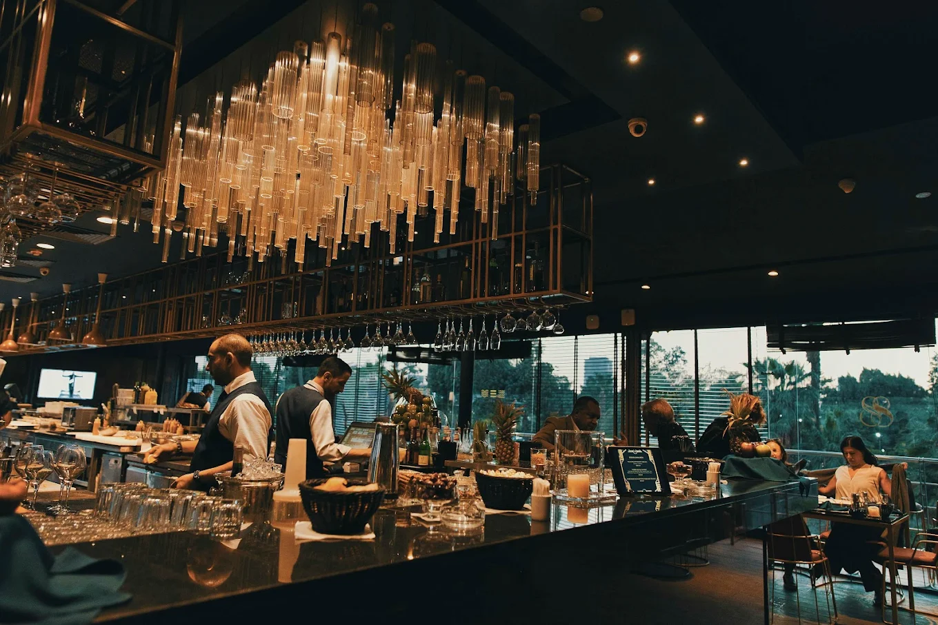 Sass combines dining with a lively lounge experience. Set on a floating venue, it offers international cuisine alongside music and an energetic ambiance, making it ideal for a longer night out.