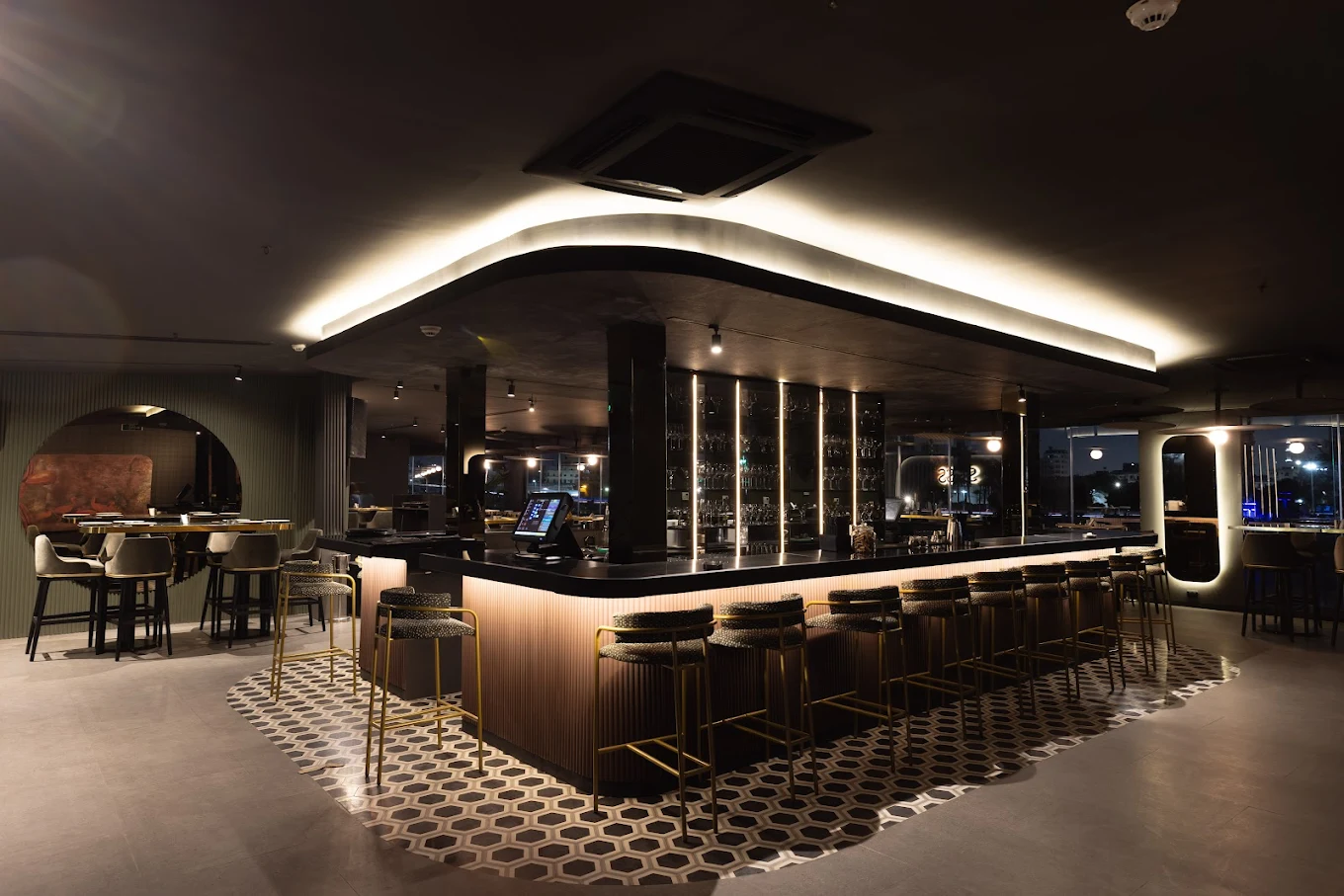 Éléve is a striking late‑night restaurant and lounge in Uptown Mokattam, known for its sculptural design and sophisticated international menu. Located on 96 Al Ahram Street, it combines panoramic city views with a crafted selection of dishes and drinks, and stays open until around 2:00 AM, making it a memorable choice for dining after 9 PM in Cairo.