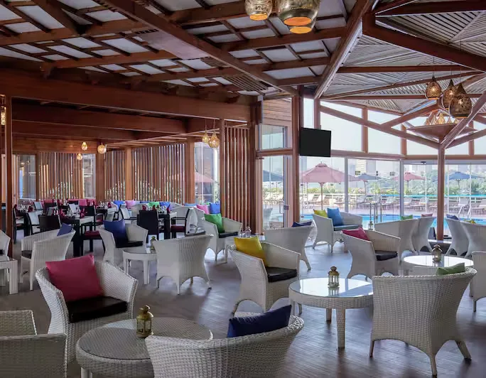 Located by the pool, Breezes provides a casual outdoor setting with impressive Nile views. Known for grilled favourites and comfort dishes, it’s perfect for a relaxed early evening meal in an open-air environment.