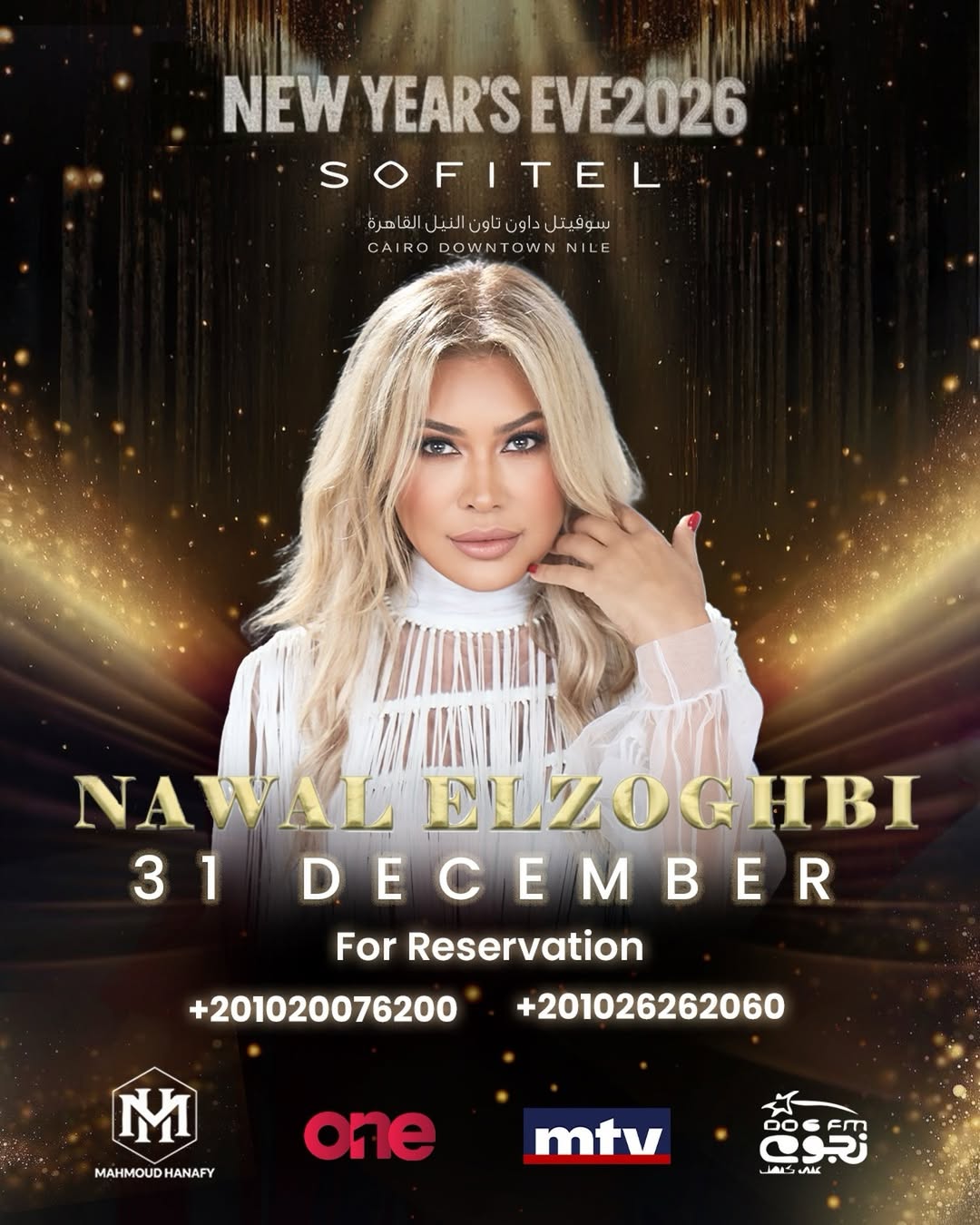 Overlooking the Nile in the heart of Cairo, Sofitel Cairo Downtown Nile welcomes the Lebanese superstar Nawal El Zoghbi for a high-energy New Year’s Eve concert. Known for her stage presence and chart-topping hits, Nawal’s performance promises a glamorous countdown filled with music, movement, and nonstop celebration.