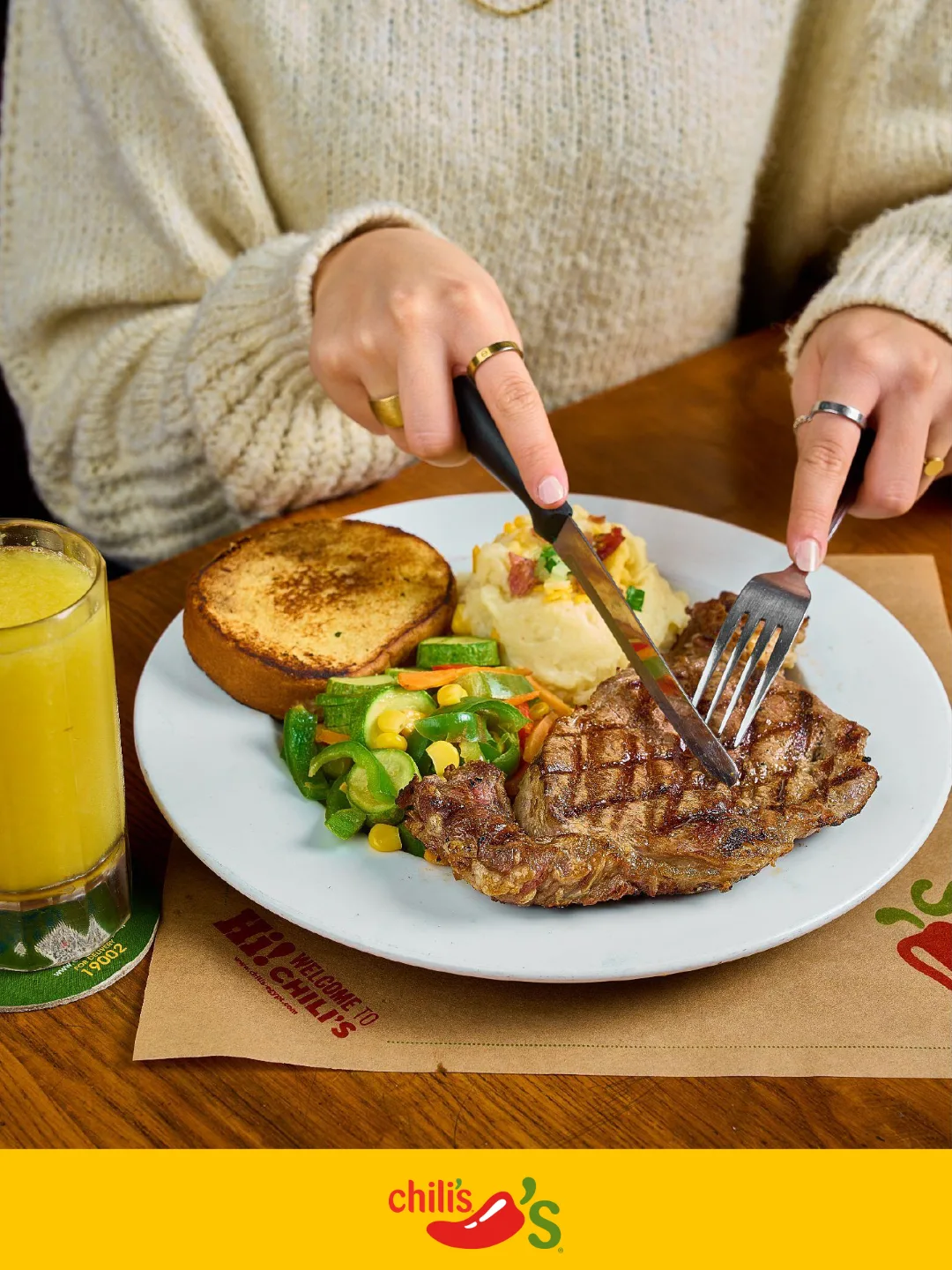 Sometimes nostalgia tastes like a ribeye. Chili’s classic ribeye brings back everything people grew up loving: a well-seasoned steak, generous portions, and unlimited soda refills that feel oddly comforting. It is not trying to reinvent anything, and that is precisely the point. This is a familiar, no-nonsense steak that hits when you want something reliable and familiar.