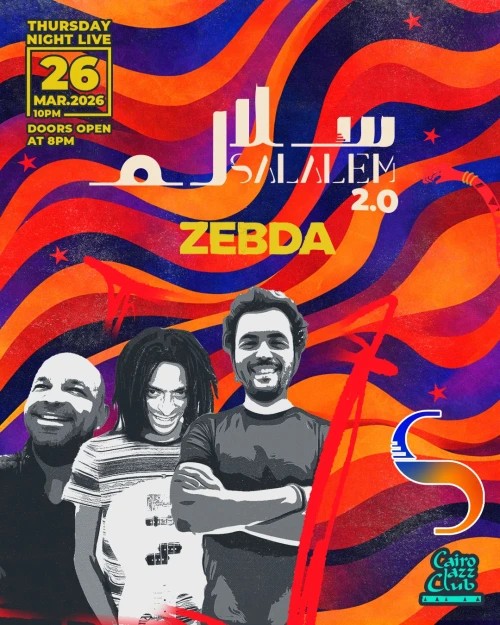 Cairo Jazz Club 197 A, 26th of July St Cairo, CairoA vibrant night of indie pop and funk with Zebda and Salalem 2.0 at Cairo Jazz Club on Thursday, March 26. For more information, hit this link!