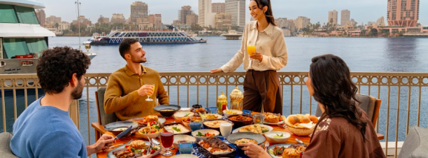 For a more relaxed yet equally refined setting, Sakya Terrace at Hilton Cairo Grand Nile offers a beautiful indoor and outdoor dining experience overlooking the Nile. Open daily from 12:00 PM until 1:00 AM, the restaurant serves a menu that brings together international favourites and Middle Eastern specialities, making it a welcoming space for Eid gatherings with family and friends.