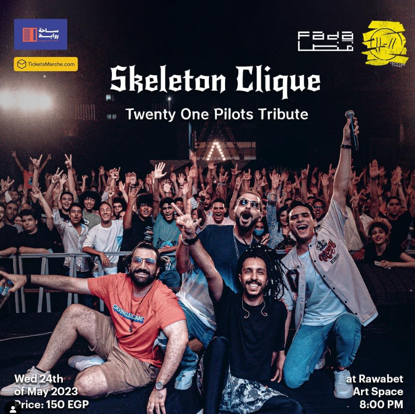 Rawabet Art Space 5 Hussein Basha Al Meamari, Marouf, Qasr El Nil, CairoIf you're feeling stressed out, take a ride down to Rawabet Art Space on the 24th of May to catch the Twenty One Pilots tribute band, Skeleton Clique!
