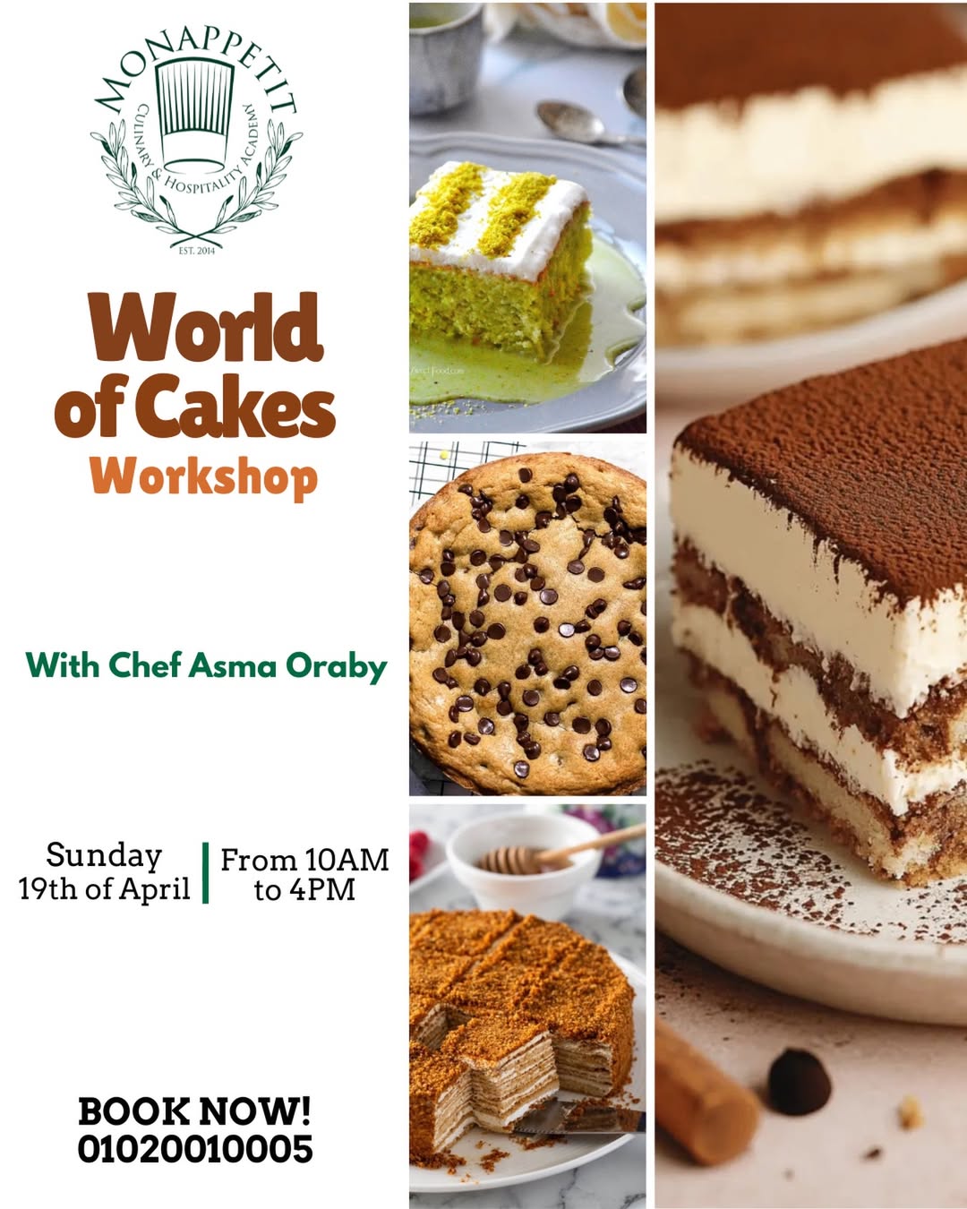 Monappetit Academy, 6th of October CityBe part of the "World of Commercial Cakes Workshop with Chef Asma Oraby at Monappetit Academy on Sunday, April 19. For more information, hit this link!